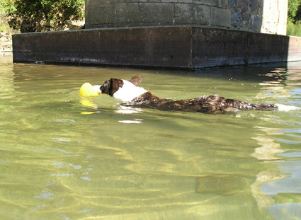 CACCBT (Certificat d'Aptitudes de Conduite de Chiens Berger au Troupeaux) : Validé Angie était sûre d’elle, très drôle et joyeuse. Très intelligente avec son fabuleux son instinct de chien de troupeau elle nous a permis d'apprendre le travail de berger. Elle était également une merveilleuse maman, une super nounou et une copine pour la meute ! Elle nous manque terriblement. ... Championne de natation ! |